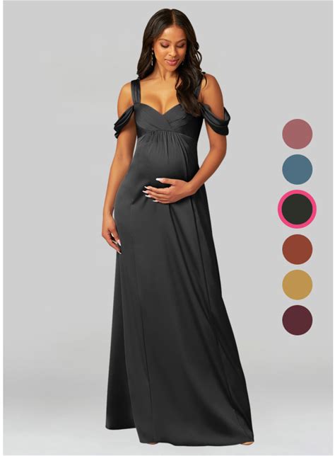 Azazie A-Line/Princess Off-The-Shoulder Floor-Length Stretch Satin Maternity Bridesmaid Dresses, Black , Size A14