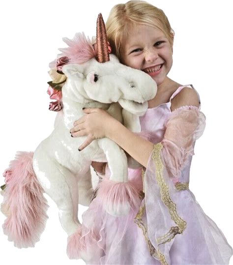 Puppet Unicorn Music Box Plush Pink Hair Flowers White Hand Puppet By