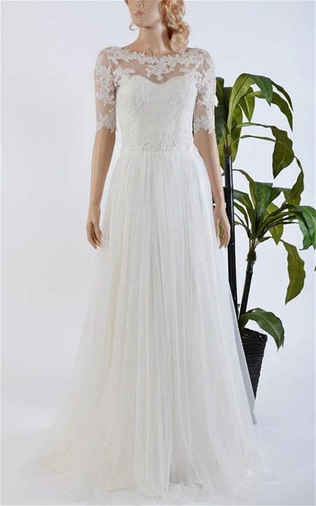Tulle Satin Bowed Lace Bolero Modest Wedding Dress - White, Size 8 By Dorris Wedding