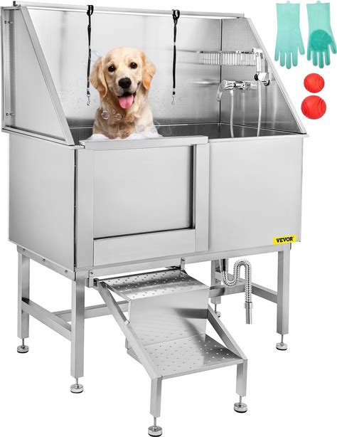 VEVOR 50 Inch Dog Grooming Tub Professional Stainless Steel Pet Dog Bath Tub With Steps Faucet & Accessories Dog Washing Station Left Door