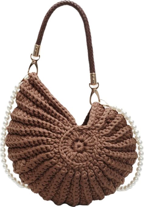 Handwoven Seashell Bag Crochet Shell Purse Summer Beach Tote Bag Pearl Clutch Purse Cute Conch Shoulder Handbag