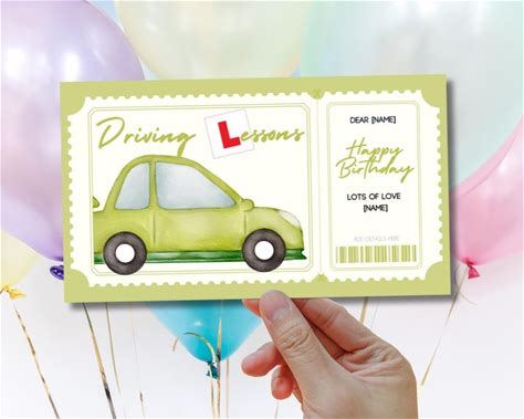 Green Personalised UK Driving Lesson Gift Card Voucher, Last Minute Birthday Gift (Digital Download)