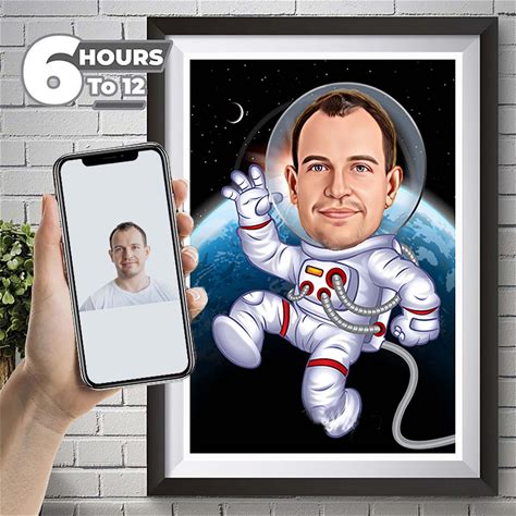 Personalized Astronaut Caricature Astronaut Cartoon Portrait, Custom Drawing From Photo, Funny Astronaut Caricature, Gift For Dad.