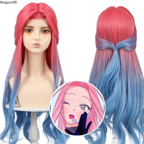 Wholesale Alien Stage Cosplay 75cm Long Straight Pink Blue Ombre Mizi Wig Synthetic Anime Heat Resistant Hair Cosplay Wig