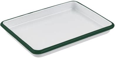 Enamel Reusable Rectangular Tray White W/Green Rim l:6.5in w:4.8in h:1in - 12 Pcs